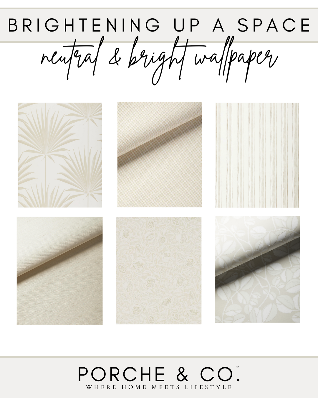 In terms of walls, we recommend sticking to light neutral colors such as white, ecru, or beige in order to keep the space feeling open and airy. If you’re looking to bring in wallpaper, keep the prints light in terms of design to not overwhelm the space. We love vertical lines or floral prints in neutral tones to add interest, while avoiding adding “weight” to a space with large, overwhelming prints. Our favorite wall papers:
